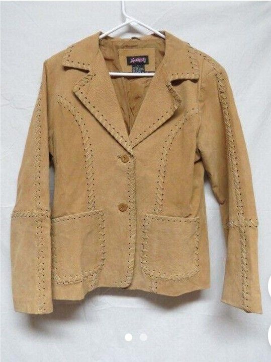 Spoiled Girl Leather Jacket with Leather Lace Trim Size L