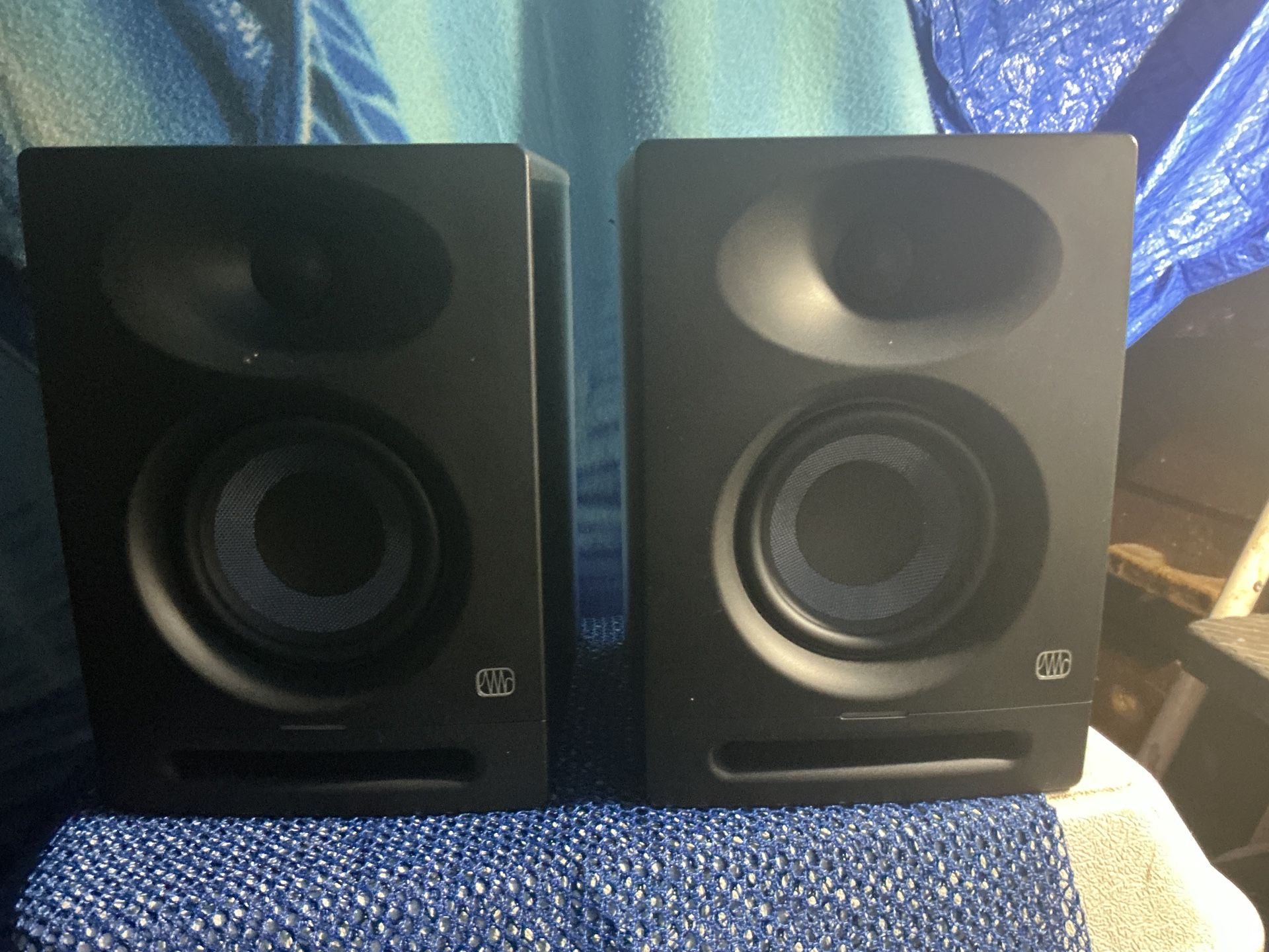 Two studio 4 speakers One keyboard Two mics with mic stand One portable zoom recorder One portable hard drive with 2tb of storage