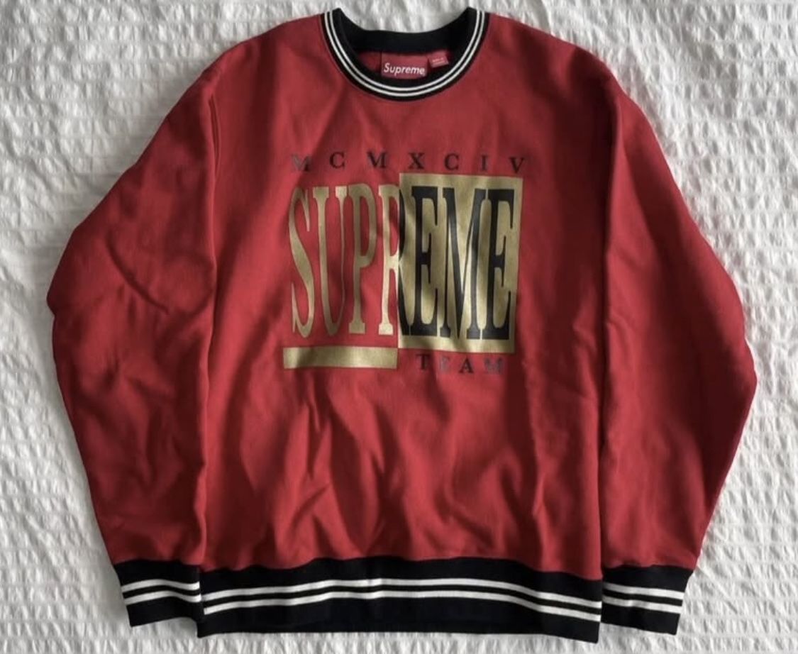 Supreme Team Crewneck Red Sz M 100 % Authentic
