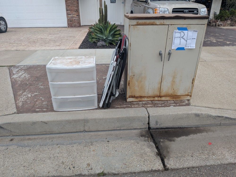Free items Plastic 3 drawer storage 2 folding chairs Metal storage cabinet 18"x36"x43" First come first served. Items will not be held. If it's not on the curb then it's been picked up. 2735 E Ruth Pl, Orange