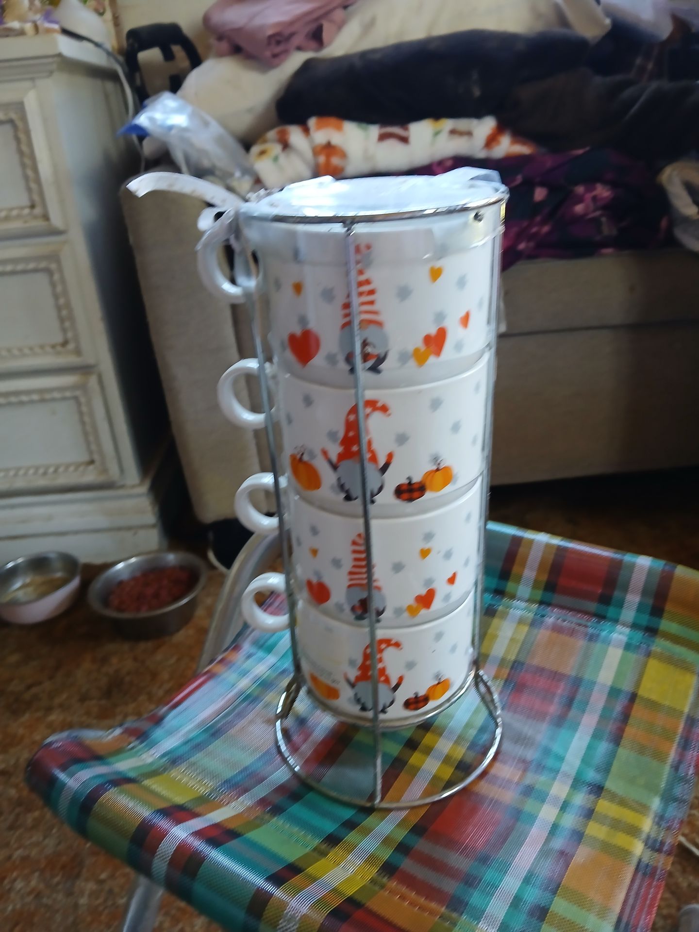 Four soup or coffee cups with stand