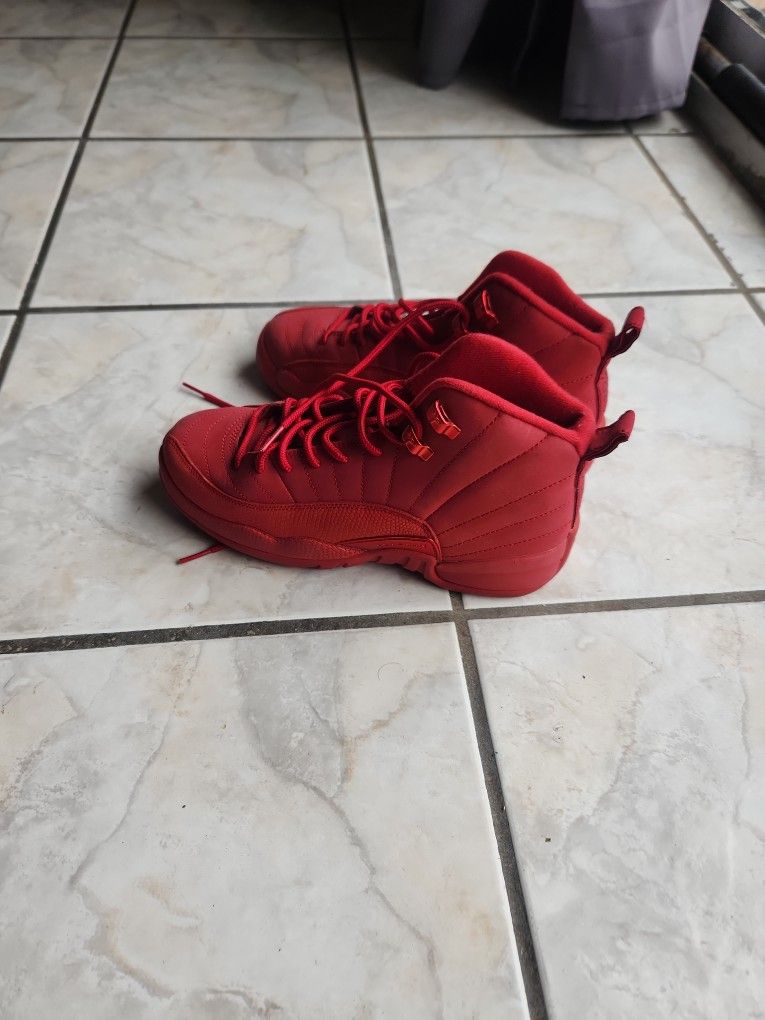 Used Nike Air Jordan 12 Retro Size 6Y. Stain on one shoe