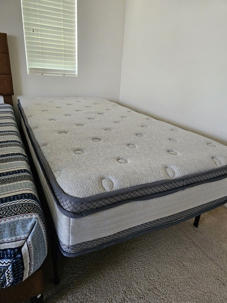 ZINUS SmartBase Compack Mattress Foundation, 14 Inch Metal Bed Frame, No Box Spring Needed, Sturdy Steel Slat Support, Twin XL Coolvie Twin XL Mattress, 10 Inch Comfy Cool Memory Foam and Innerspring Hybrid Mattress, with Individually Pocket Coils, Cushioning Euro Top and Breathable Hypoallergenic Knitted Cover
