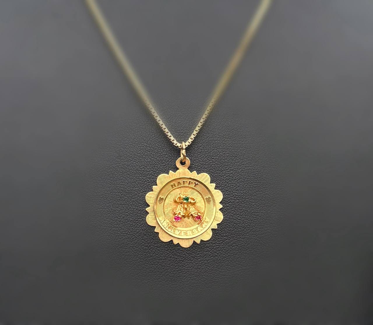 14k solid yellow gold Happy Anniversary Emerald Ruby 0.1CTW Pendant charm