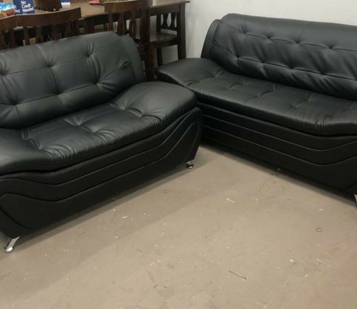 Brand New Black Leather Sofa & Loveseat