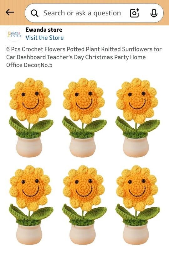 6 Pcs Crochet Flowers Potted Plant Knitted Sunflowers
