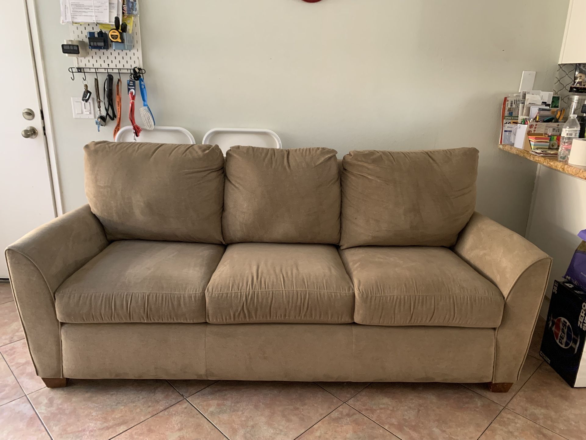 Versatile retractable couch with queen-size mattress β perfect for guests, small spaces, or multi-use rooms. Easily converts from a sofa into a comfortable sleeping area. π Dimensions: β’ Length: 76β β’ Height (back): 32.5β β’ Height (front): 25β β’ Depth: 37β ποΈ Queen-size pull-out mattress included β Great for overnight guests β Space-saving design β Comfortable and functional β Ideal for living room, office, or studio π Located in Ontario, CA π Pickup only (may require larger vehicle for transport) π² Price: 100