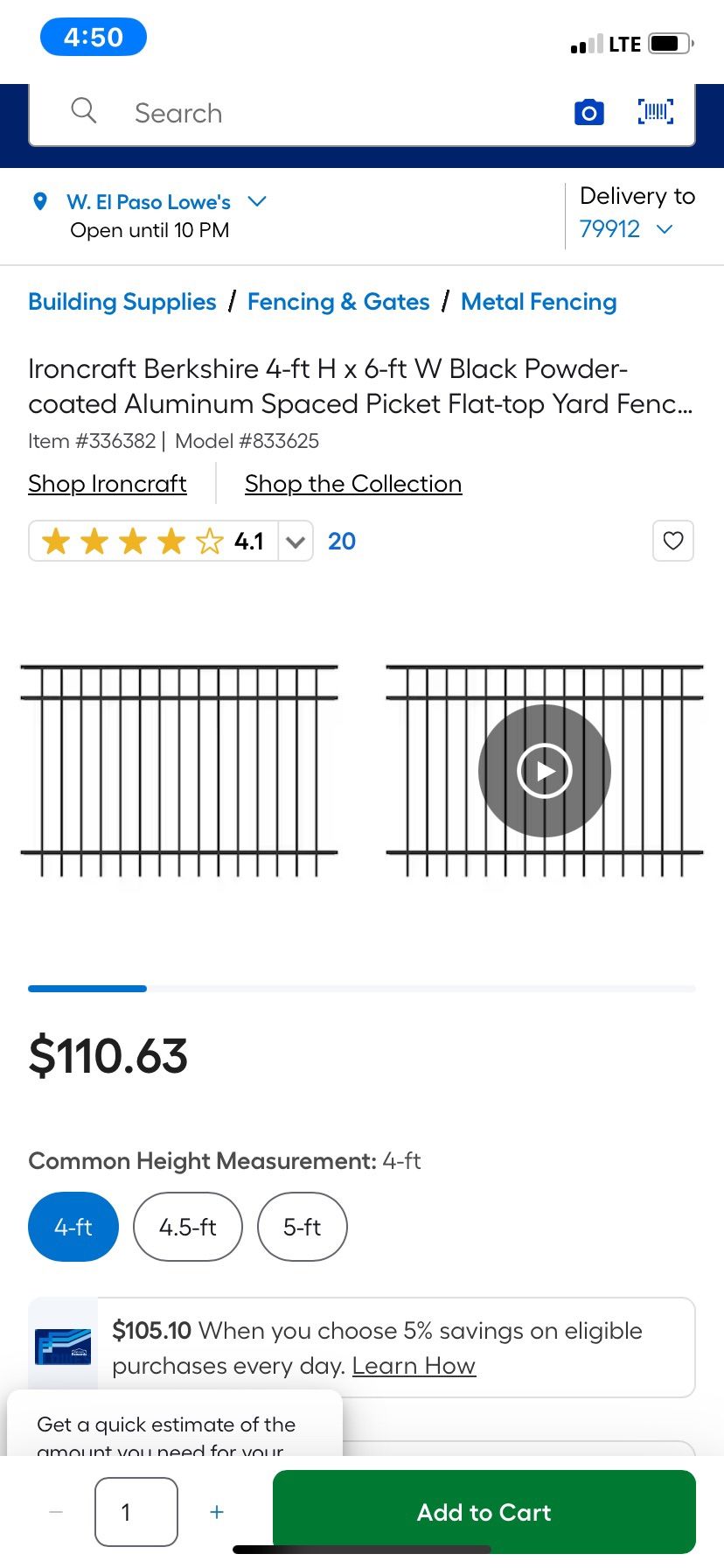 Ironcraft Berkshire 4-ft H x 6-ft W Black Powder-coated Aluminum Spaced Picket Flat-top Yard Fence Have 5 items, in boxes, new 85.00 ea
