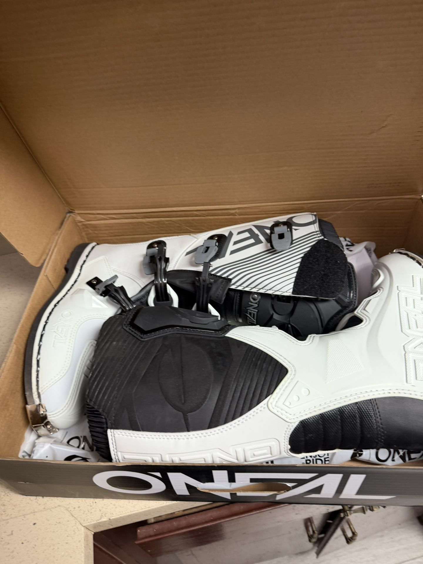 O’Neal element boot white size 10 . My son only wore them once so literally brand new