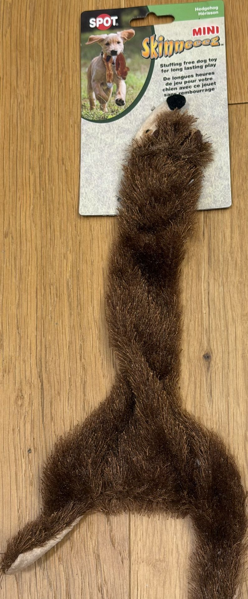 New Ethical Pet SPOT Skinneeez Hedgehog 13 Inch Stuffing-Free Plush Squeaky Dog Toy – Soft Interactive Chew Toy for Small and Medium Dogs – Mess-Free Play. Dogs Love These Toys! Online as much as $19.99. Ours Brand New $11.99 About these Skinneeez Product:The Spot Skinneeez Dog Toy is a stuffing-free dog chew toy that satisfies a dog's natural hunting instinct. These interactive dog toys are designed to have natural flip flopping action.