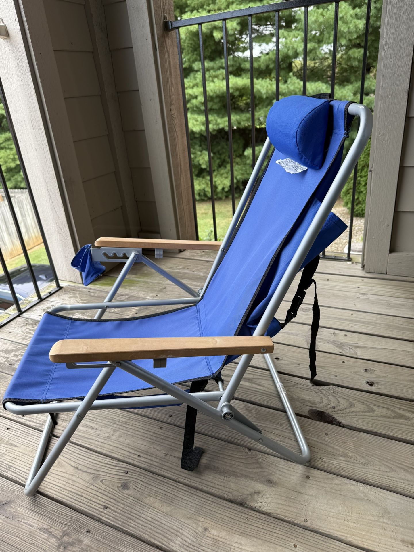 2 items ( price for 2 - 90$) Rio Beach Original 4-Position Steel Backpack Chair with Pillow, Hands-Free Beach Chair Backpack for Adults, Navy Condition 9/10 Used 2 times on the balcony