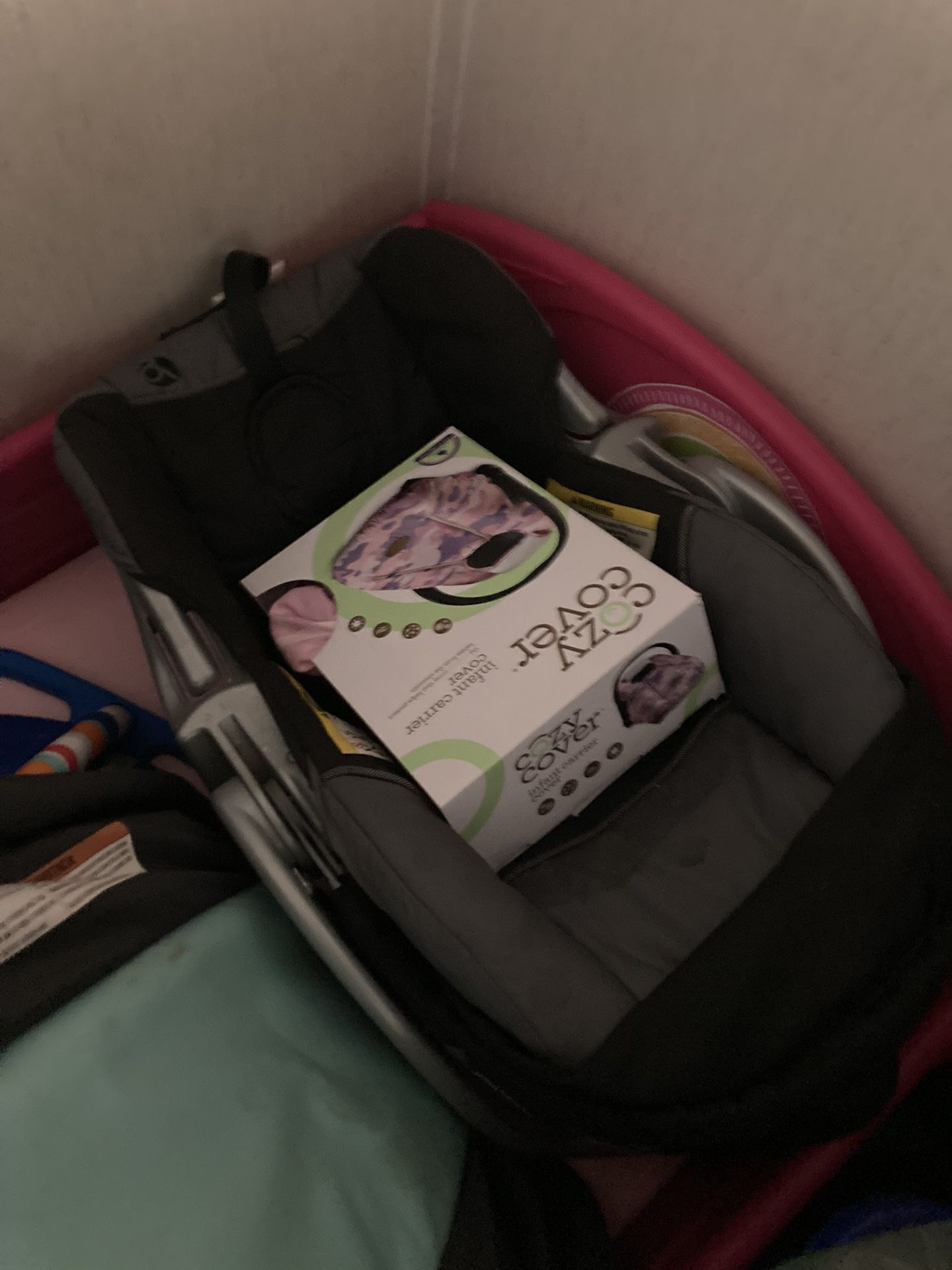 Newborn car seat up to 35 pounds In date Comes with pink camo car seat cover