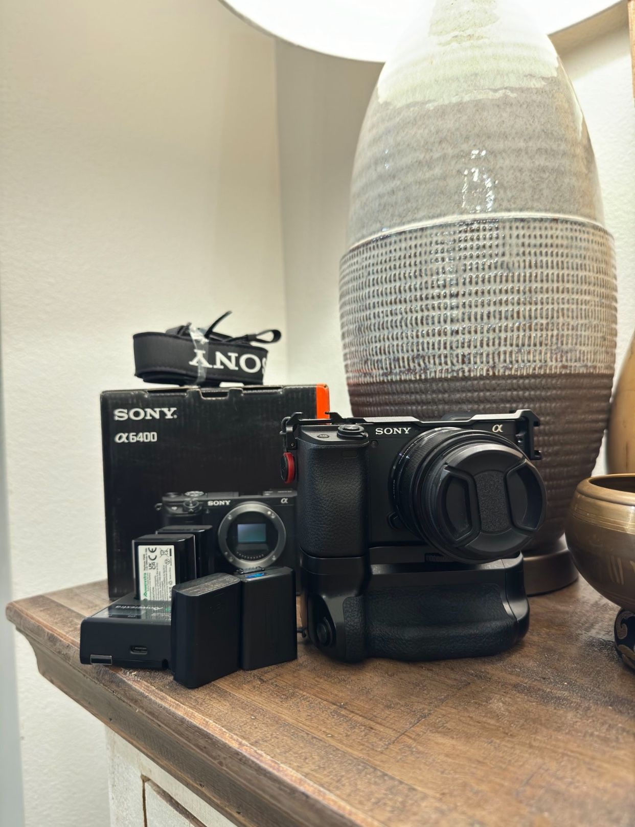 A6400 with box Original strap 4 batteries Charger 35mm 1.8 MEIKE 35mm f1.7 Battery grip Smallrig cage Extra lens Meike MK 35mm F1.7 Large Aperture Manual Prime Fixed Lens (E-Mount)