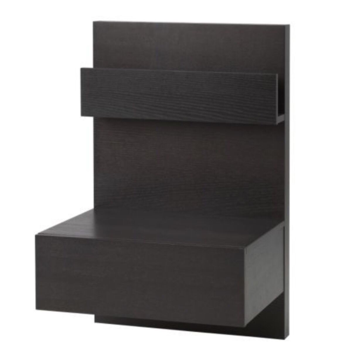 IKEA Floating nightstands $50 each These are no longer sold They complimented the IKEA Malm Low Bedframes. When they moved to the Malm high they didn’t work with halving four drawers under the bed. I definitely one of the drawers underneath the bed as an option so we switched to Malm high and then moded the nightstands to accommodate the Malm High Bed Frames. I got some ridiculously priced mounting frames Attached them to a board which is conveniently hidden behind the headboard. The system has held up even with kids. It’s secure. And ready for new lovers of floating nightstands which allows one to have full access to the drawers below … without having to move a nightstand before getting into drawer. I have two others that we used with a brimnes bedframe. This is also really great for renters as one does not have to drill into the drywall.