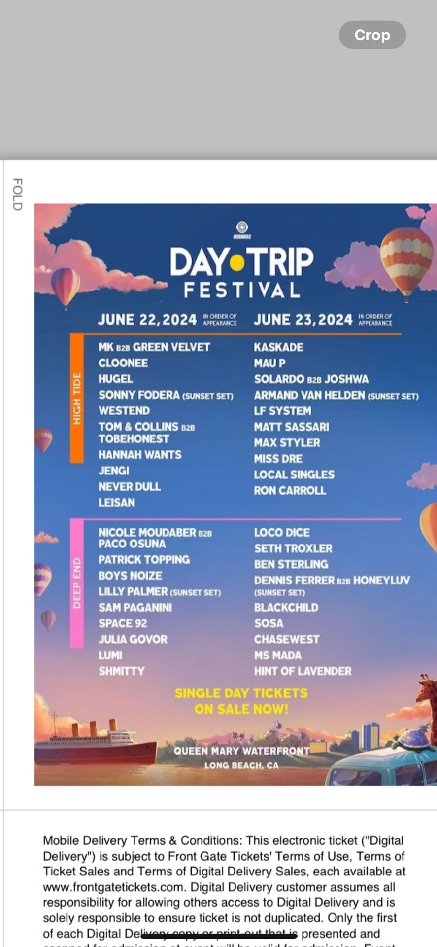 Selling a 2 day, ticket for day trip. Have proof of purchase. Asking for what I paid. OBO