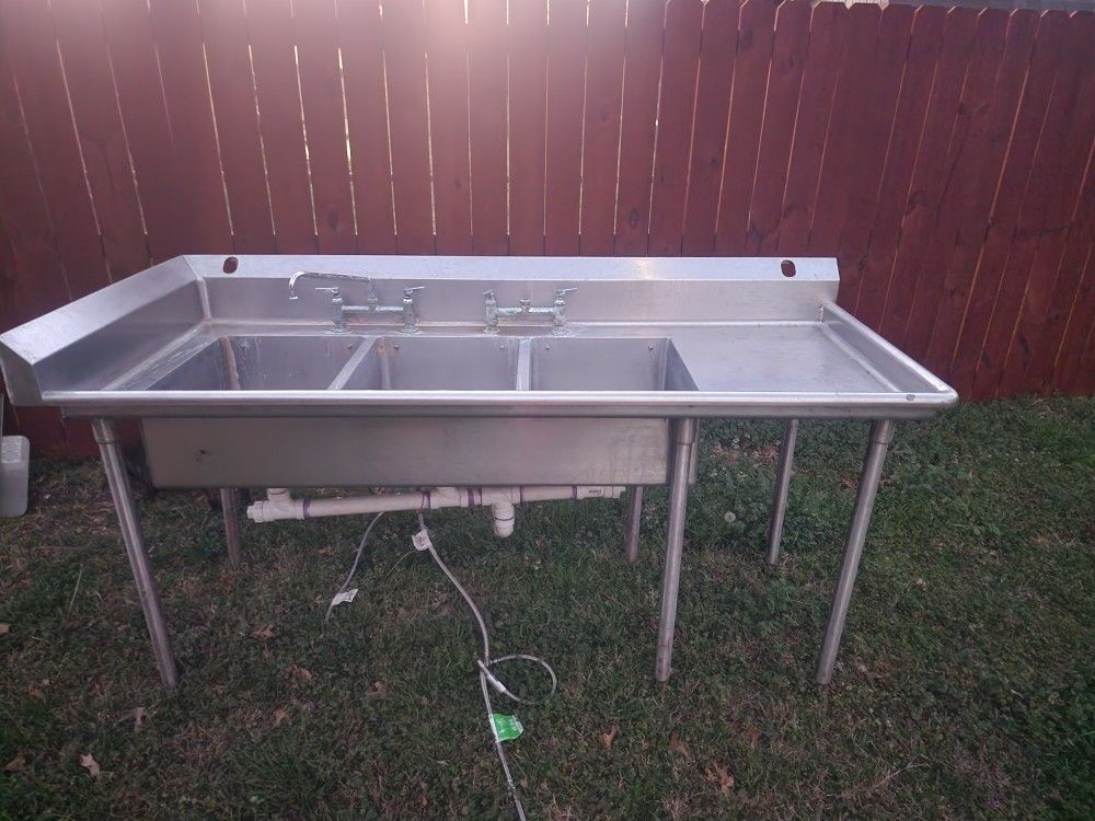 Sink de 3 compartimientos de Stainless Steel con tabla de drenar a lado muy buenas condisiones Good condition sink