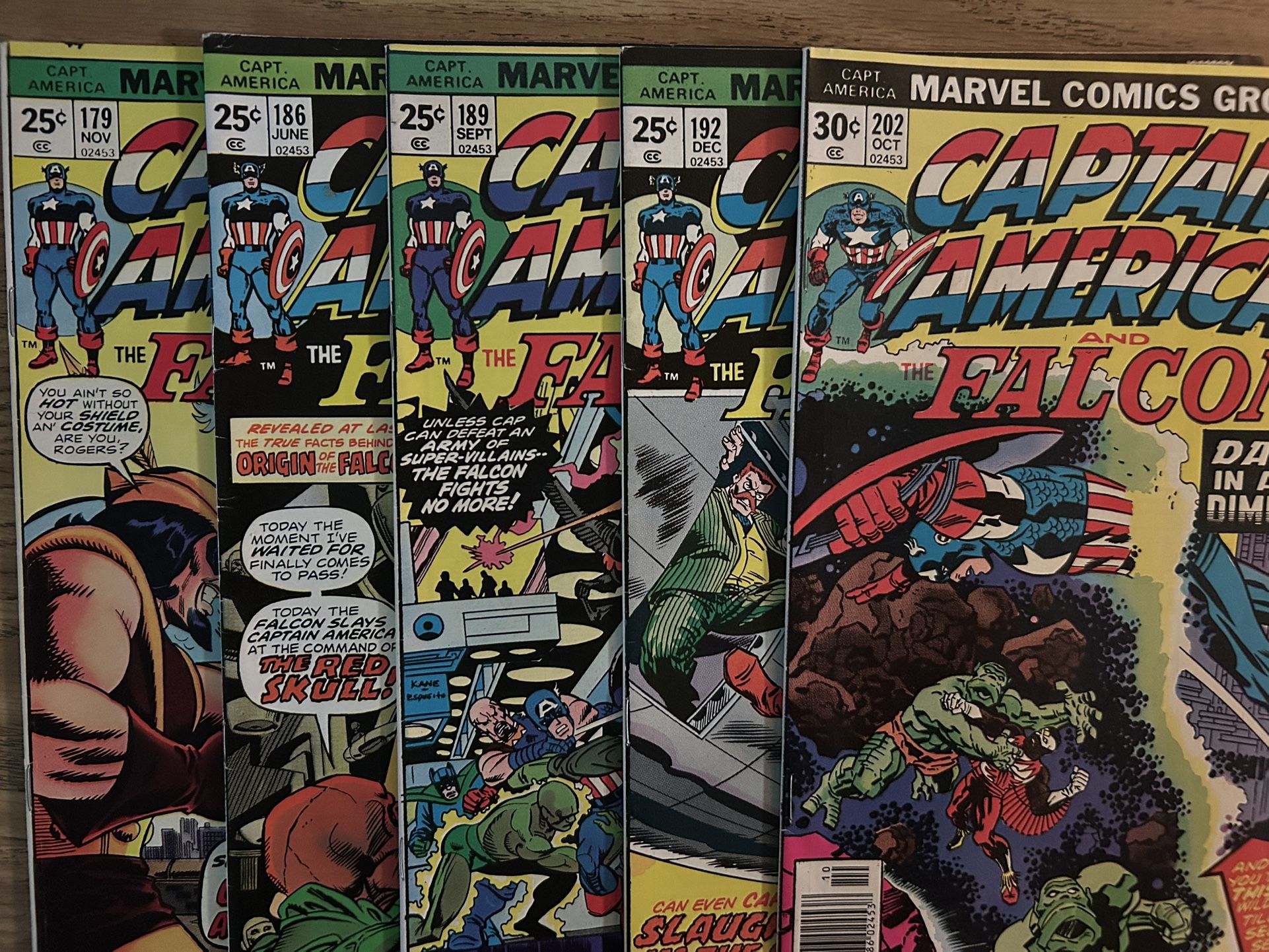 Marvel’s comics Captain America and Falcon 179, 186, 189, 192, & 202 VG