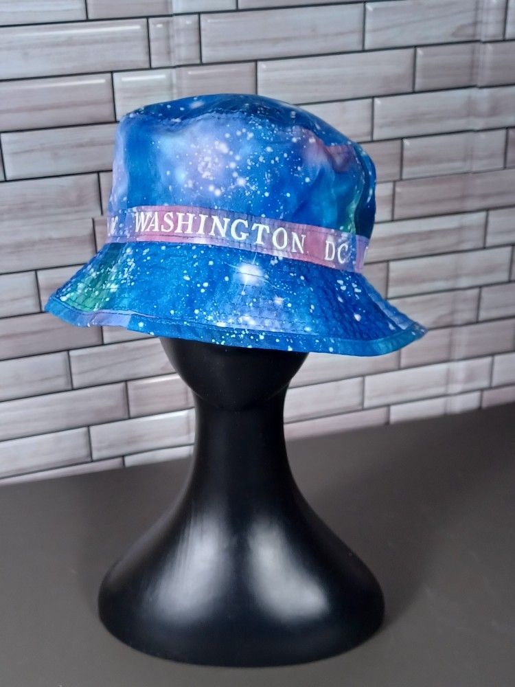 Washington DC Galaxy Bucket Hat Fisherman Outdoor Cap . unisex boy / girl pre-owned good used condition tiny mark inside of hat and pet 1 cat friendly home.Thank you for shopping 🛍. Unisex fashion bucket hat, made like the traditional fisherman bucket sun hat. One size fits most heads.Made of 100% cotton, breathable and high quality. Machine wash cold with like colors, or hand wash. We recommend washing in a garment bag to prolong the life of your hat. Tumble dry low, or for best results allow to set out and dry.Protects your head and face from harmful UV rays.