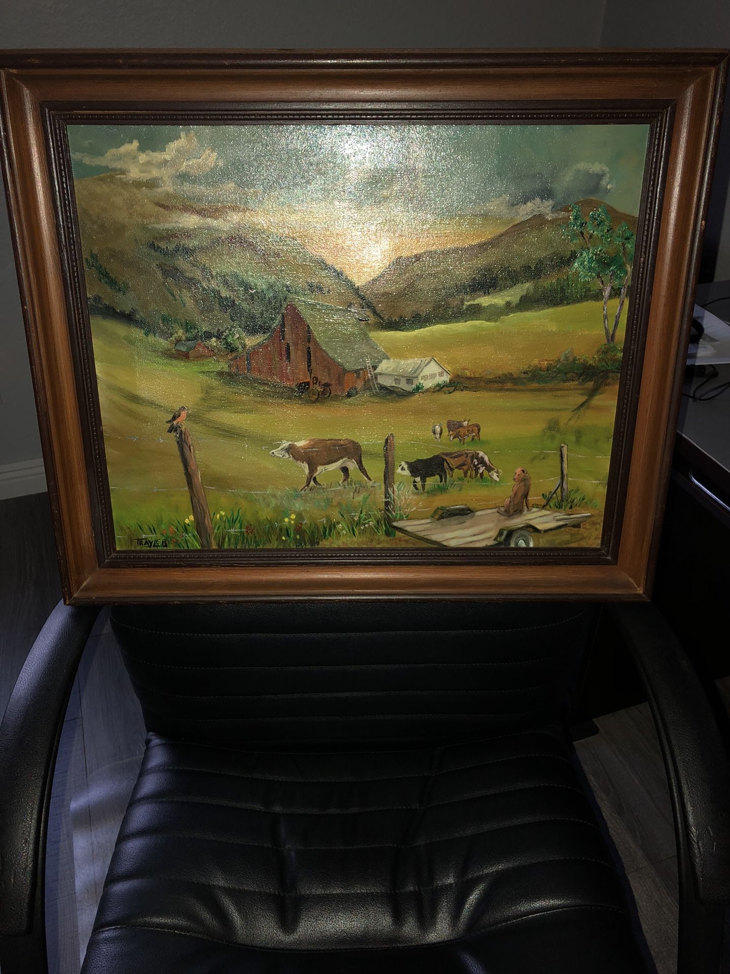 One of a kind oil painting. The paper in the back is torn but when hung, it’s not noticeable.