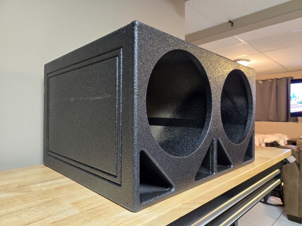 Brand New Vented Subwoofer SPL box for 12" subs. Ported boxes are made for loudness. I can transfer both of your subwoofers to the new box for an additional $50, labor, speaker wire, screws, foam tape, and connectors included.