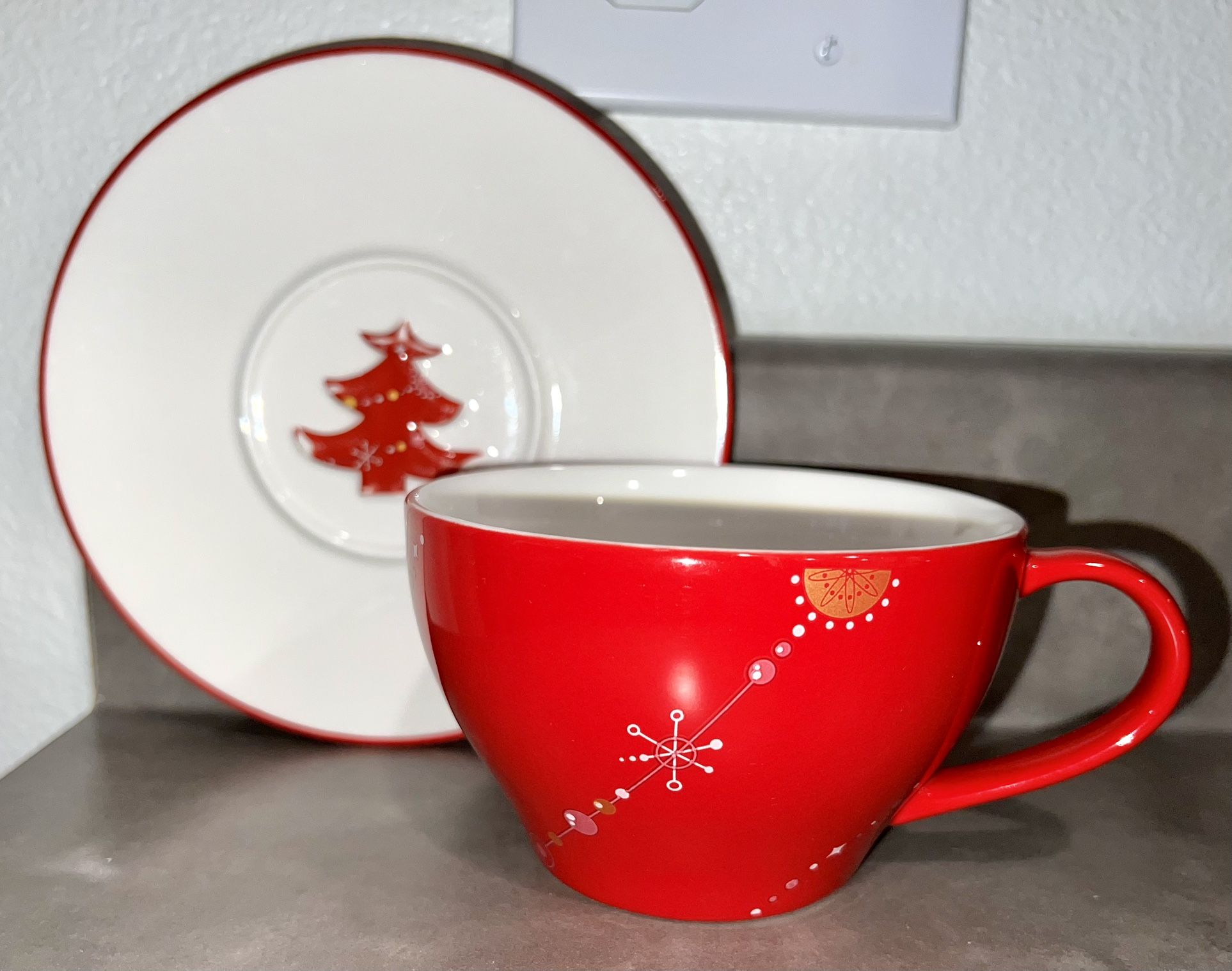 Starbucks NEW Vintage Collectible Holiday Gift Red Christmas Tree Hot Cup & Saucer Set