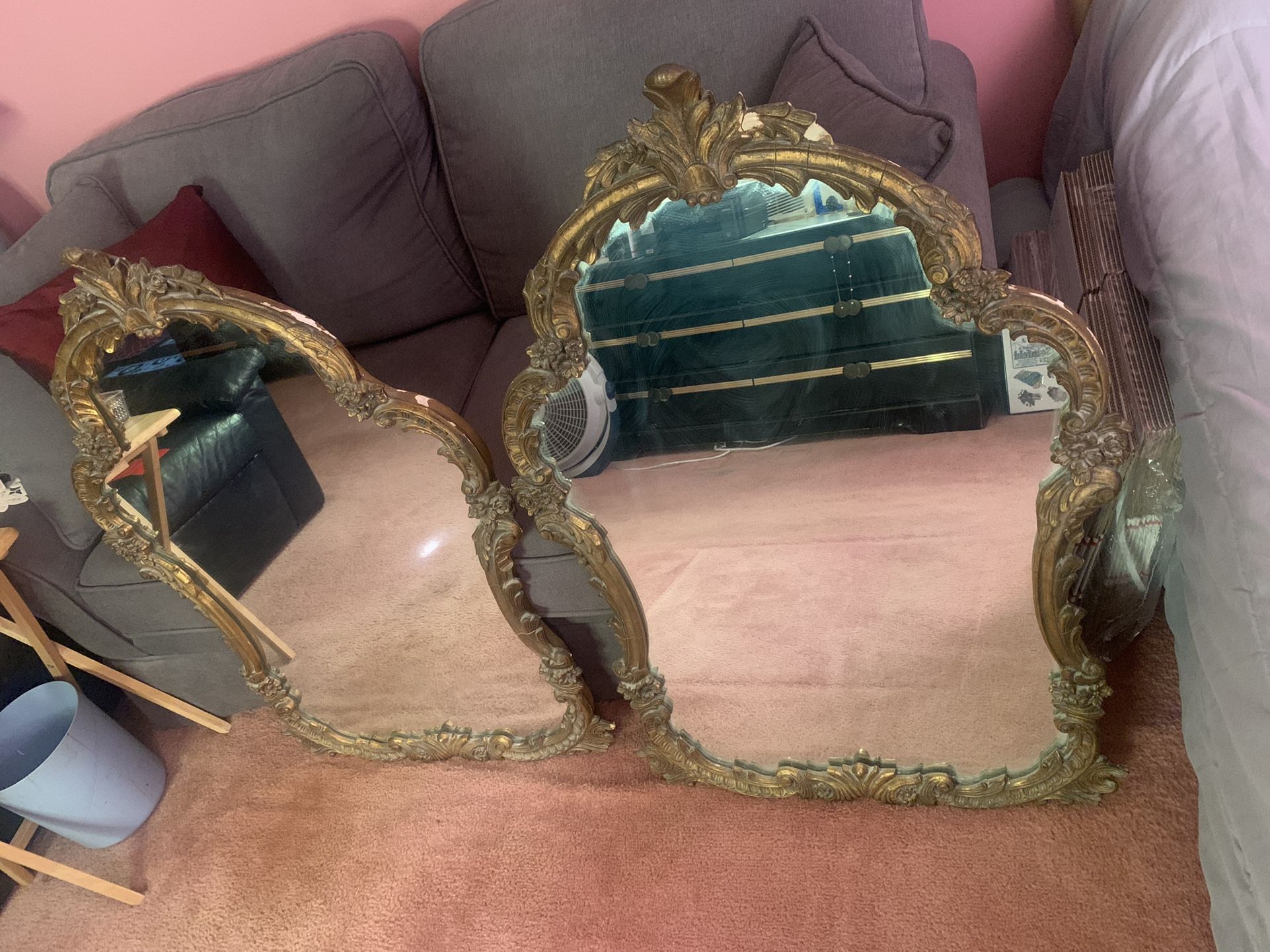 2 (50lb)Each Casted Heavy Duty Antique Mirror From 1950’s 3 1/2 Ft High By 3 Ft Wide