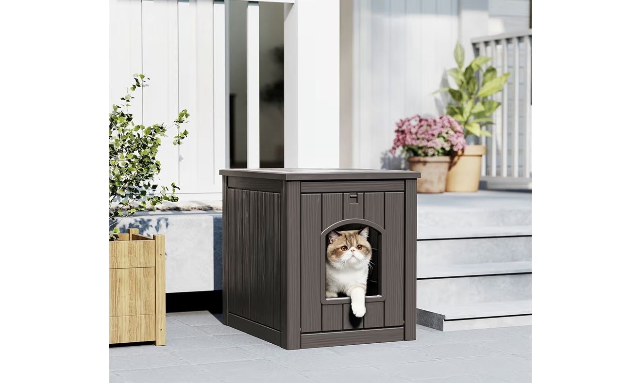 Cat Litter Box Enclosure, Plastic Hidden Litter Box Side Table with Openable Front Door, Waterproof & Weatherproof Cat House for Indoor & Outdoor Use