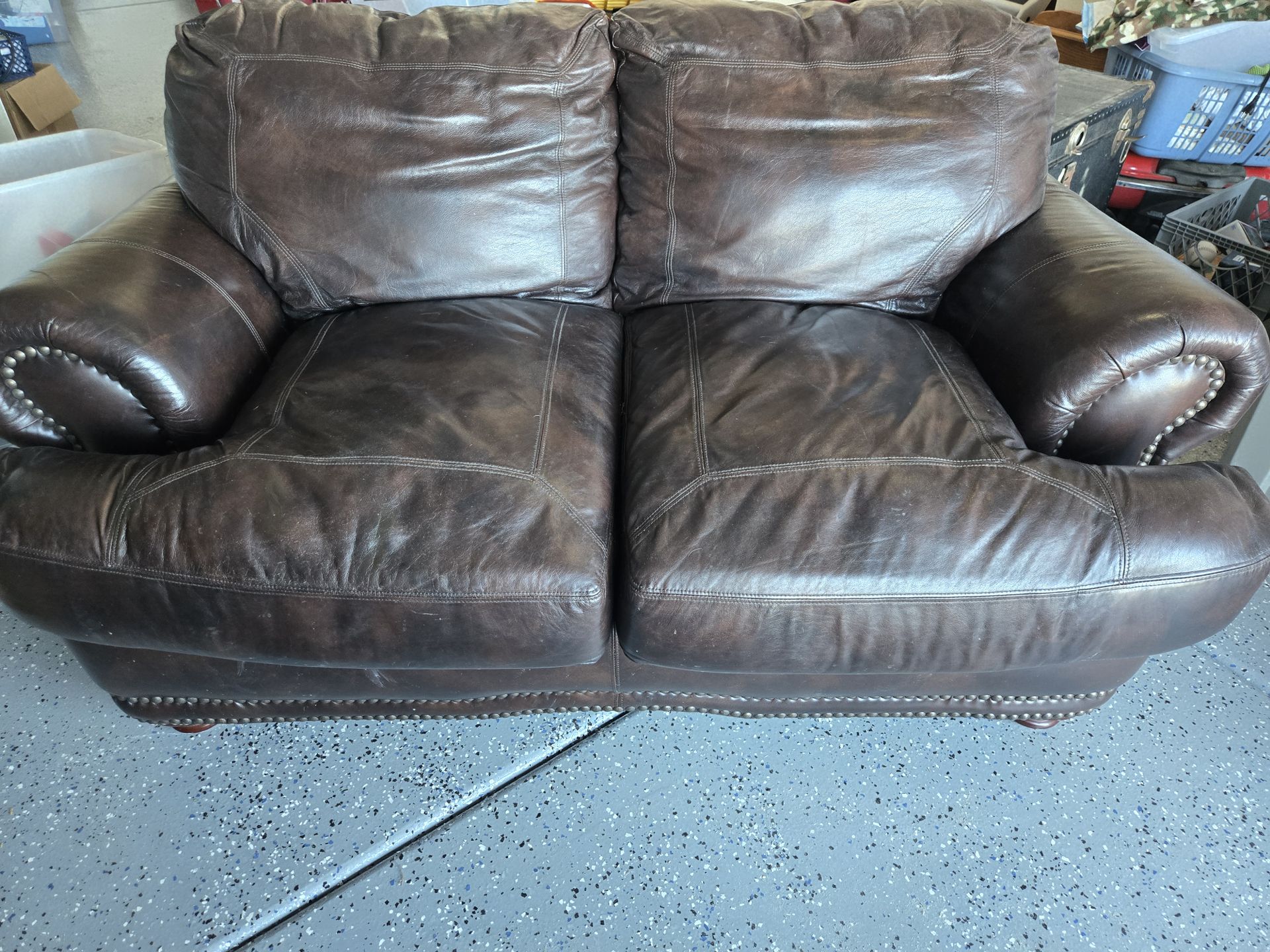 Leatherette dark brown loveseat. Very comfortable