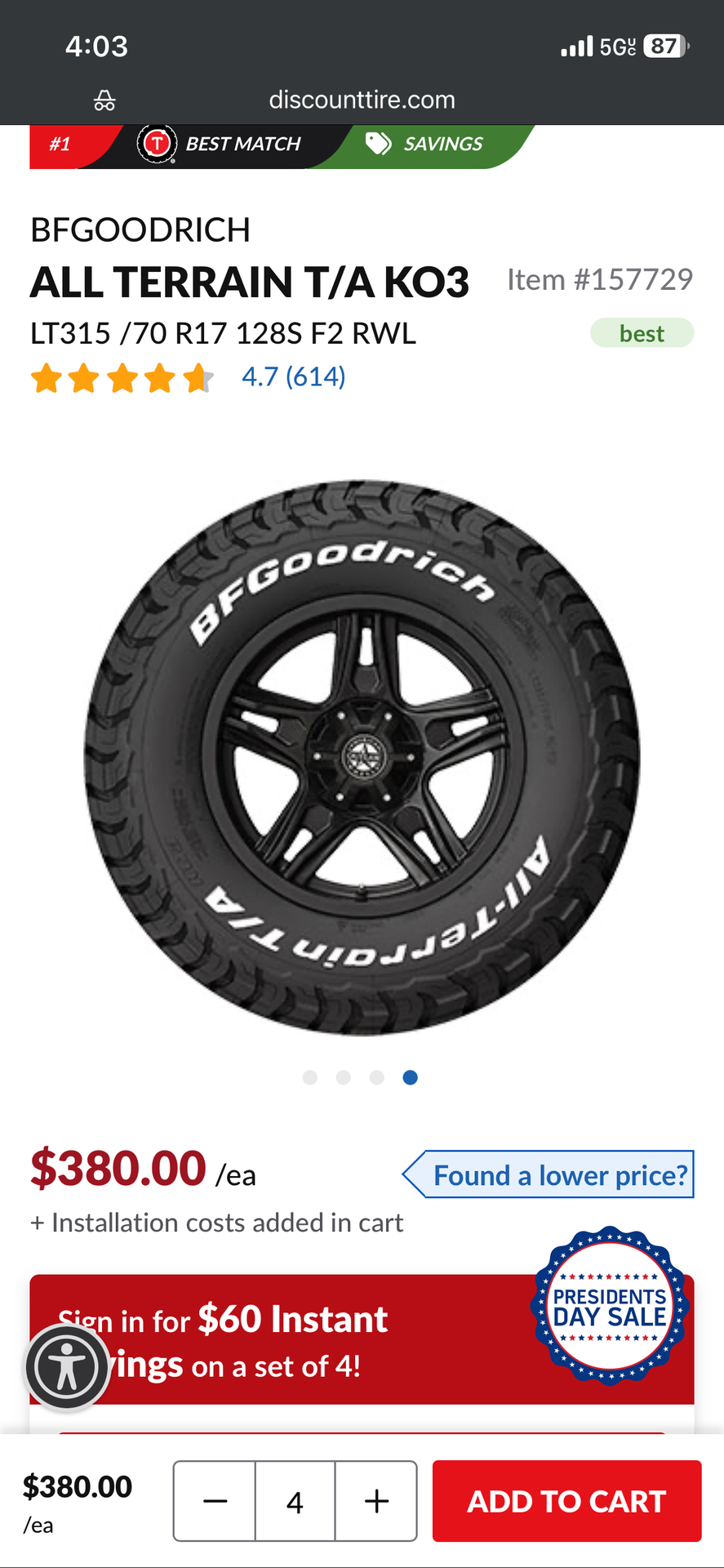 I have 3 BF Goodrich K03 for Raptor 35PP. Less than 10k miles on them. $200/each OBO.