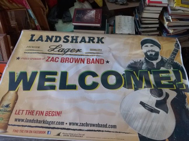 Zac Brown Band welcome Banner 53 in wide and 36 in tall has hanger bracket on top produced in 2010 by Landshark great piece for the man cave or garage