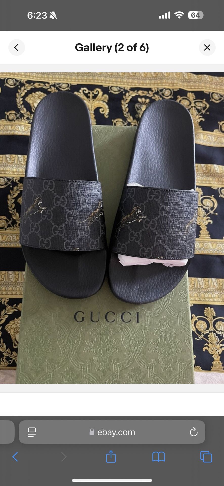 NEW AUTHENTIC GUCCI GG Supreme Tiger Print Black Slides Sandals