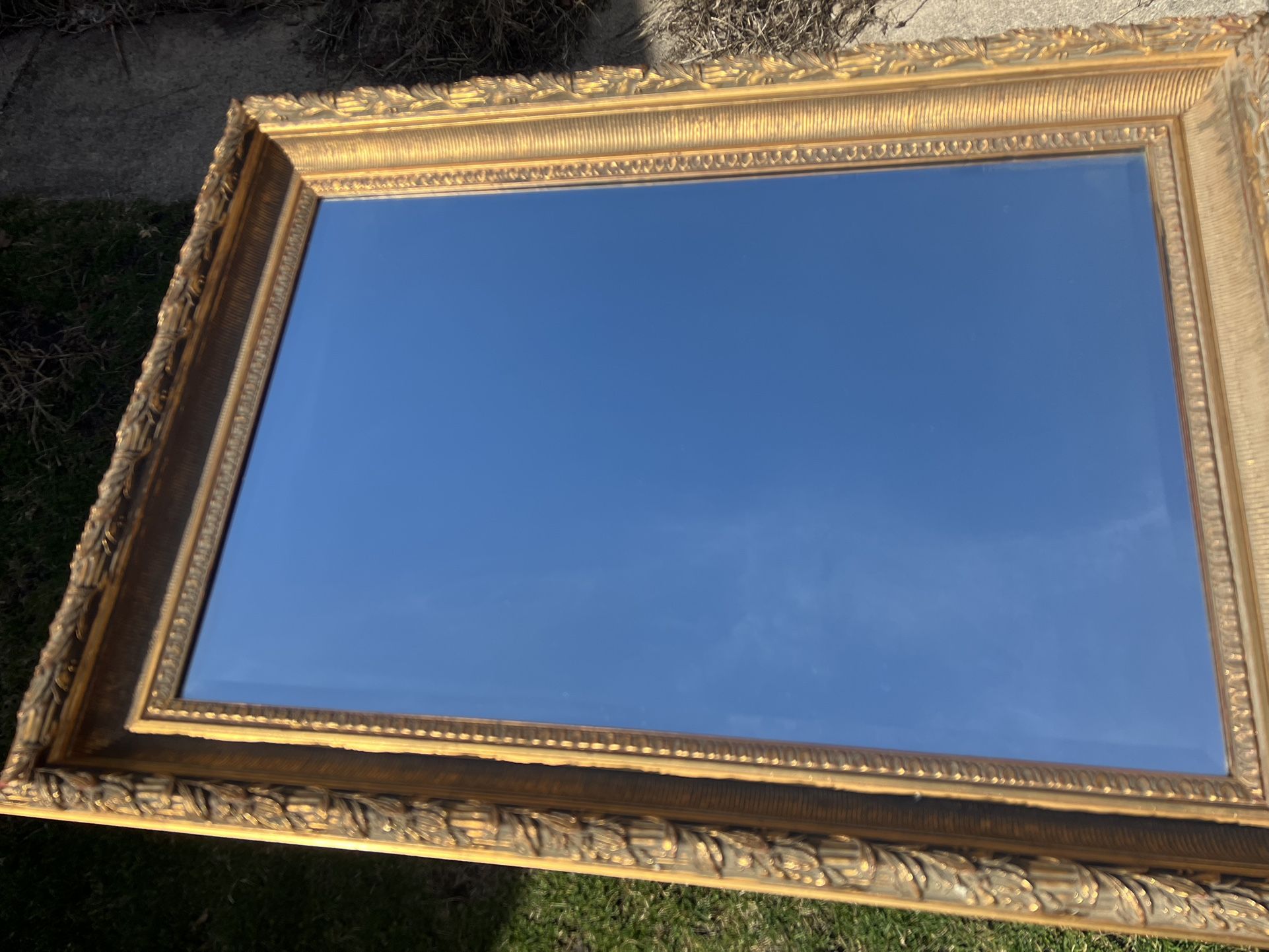 Large Ornate LeBarge Gilt Beveled Glass Mirror 44 58” X 32 5/8” X 3 1/4”