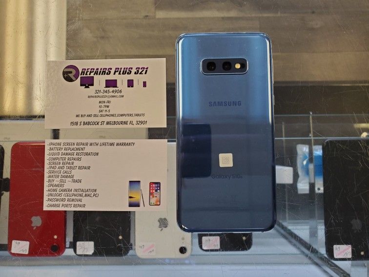 We have a blue unlocked Galaxy S10e 128gb for sale! It comes with a 60 Day Warranty! Charger included! We offer financing and we even give you a chance to extend the warranty to one year! Come Visit Repairs Plus 321! We have many other iPhones, Samsung, Macbooks, and Apple Watches for sale!