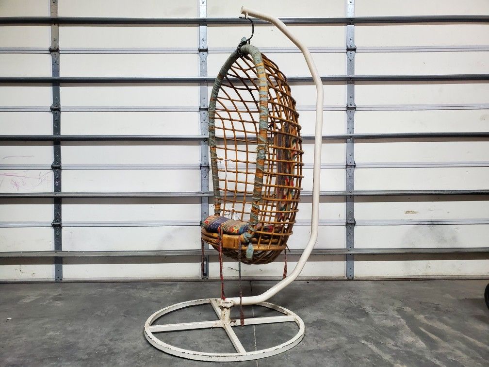 Vintage Rattan Wicker Hanging Basket Chair Seat With Stand
