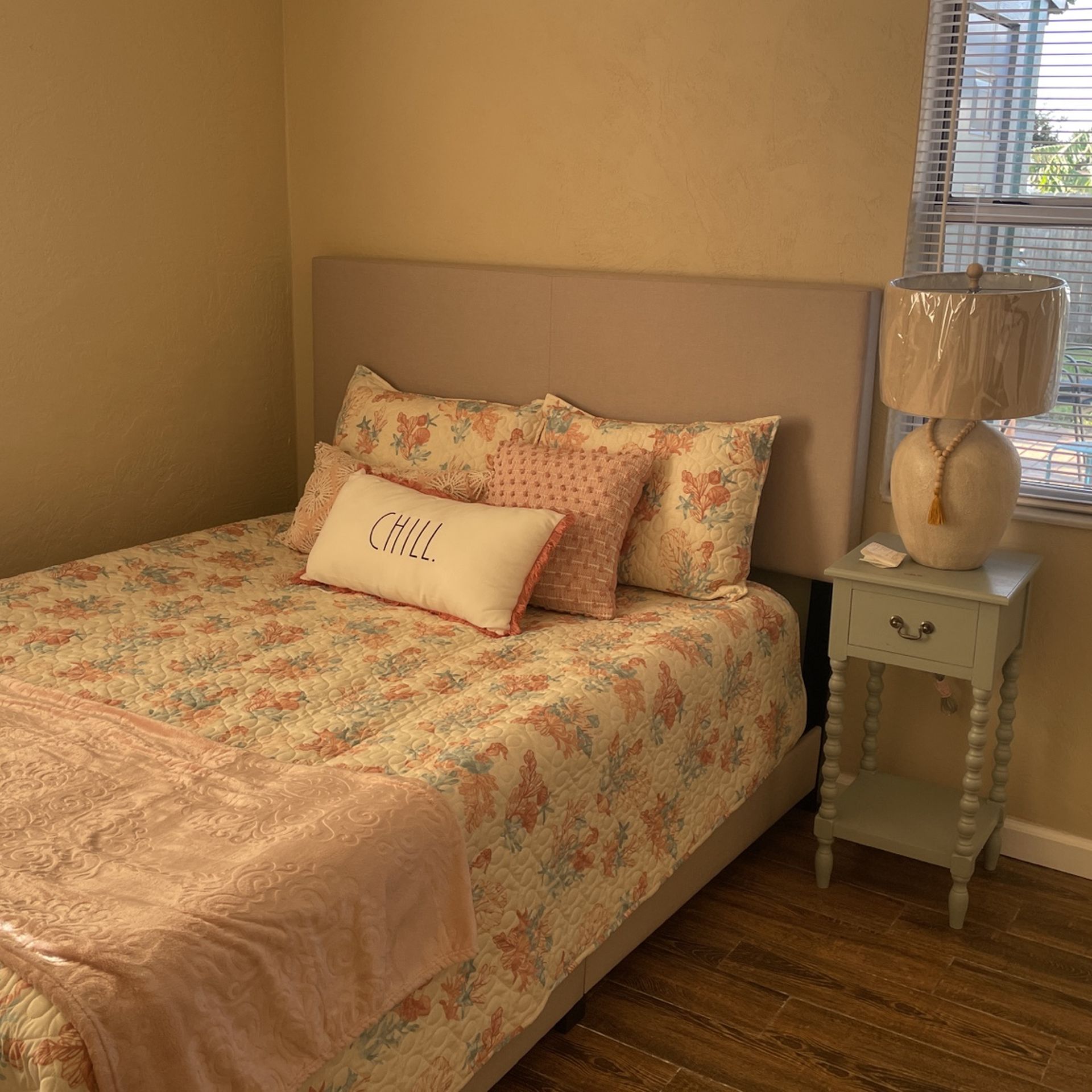 Bedding, Bed, Dresser, Lamp, Nightstand