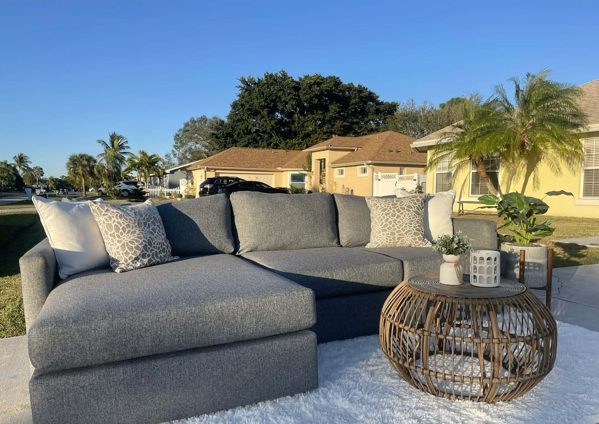 Grey Kevin Charles sectional 9.5ft x 5.5ft All covers unzip to throw in the washer in the future