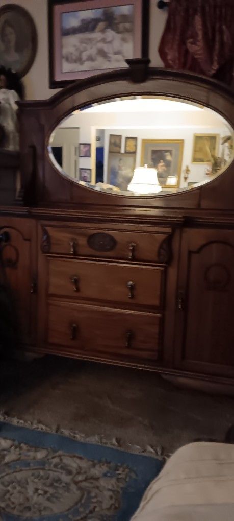 Antique Brown Buffett,Large Center Mirror,4/5 Drawer /with old Key.Queen Ann Legs.mpu/thousand Oak and Jonesmaltzberger area. 64height/57w.price firm.
