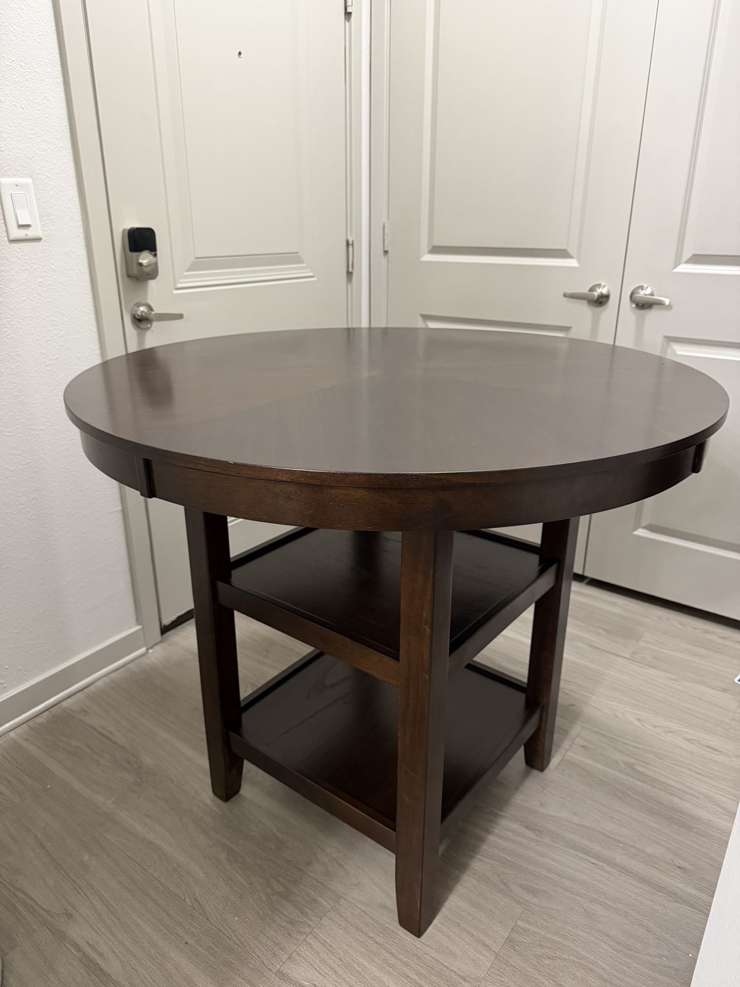 High dining table NEW and excellent condition. Very sturdy, modern style, perfect for apartments or small spaces. Comfortable height design. Price negotiable, brand new, selling because we only needed the seats but not the table. Mesa de comedor alta en excelente estado. Muy robusta, de estilo moderno, perfecta para apartamentos o espacios pequeños. Precio negociable, completamente nueva, se vende porque solo necesitábamos los asientos pero no la mesa. Diseño cómodo a la altura.