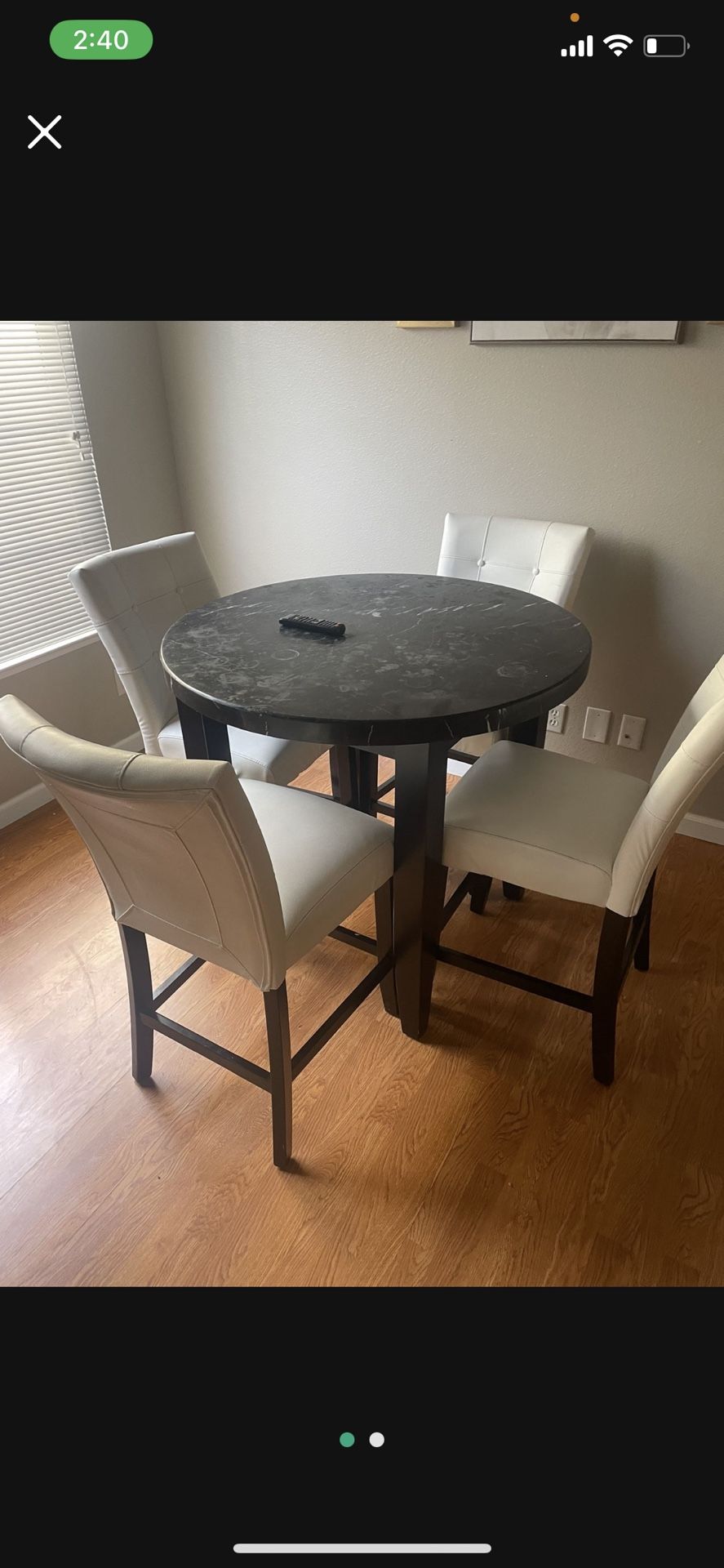 Natural Marble table with 4 counter stools in normal condition no break or chips . Super steady and stylish