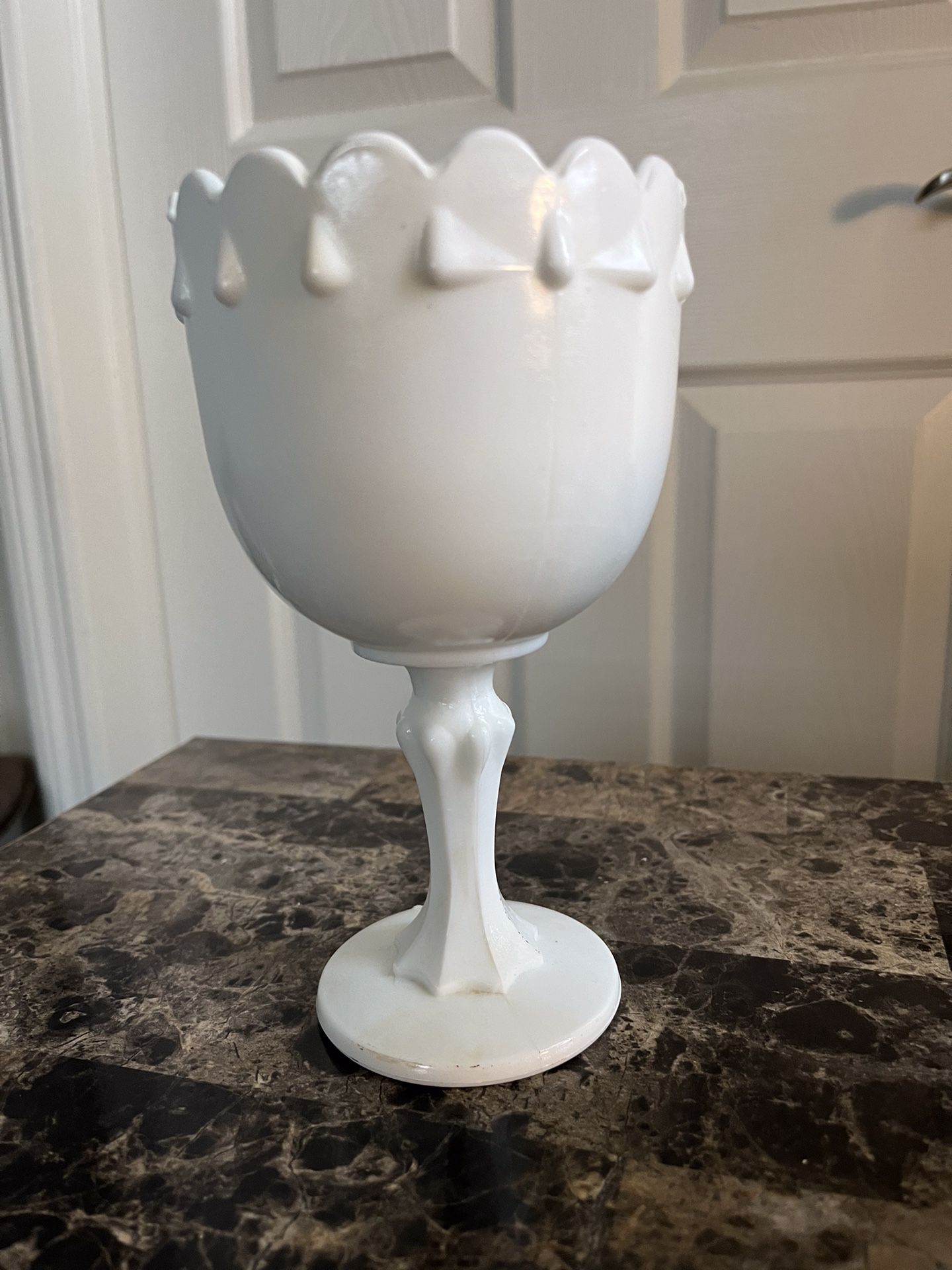Milk Glass Scalloped Teardrop Goblet