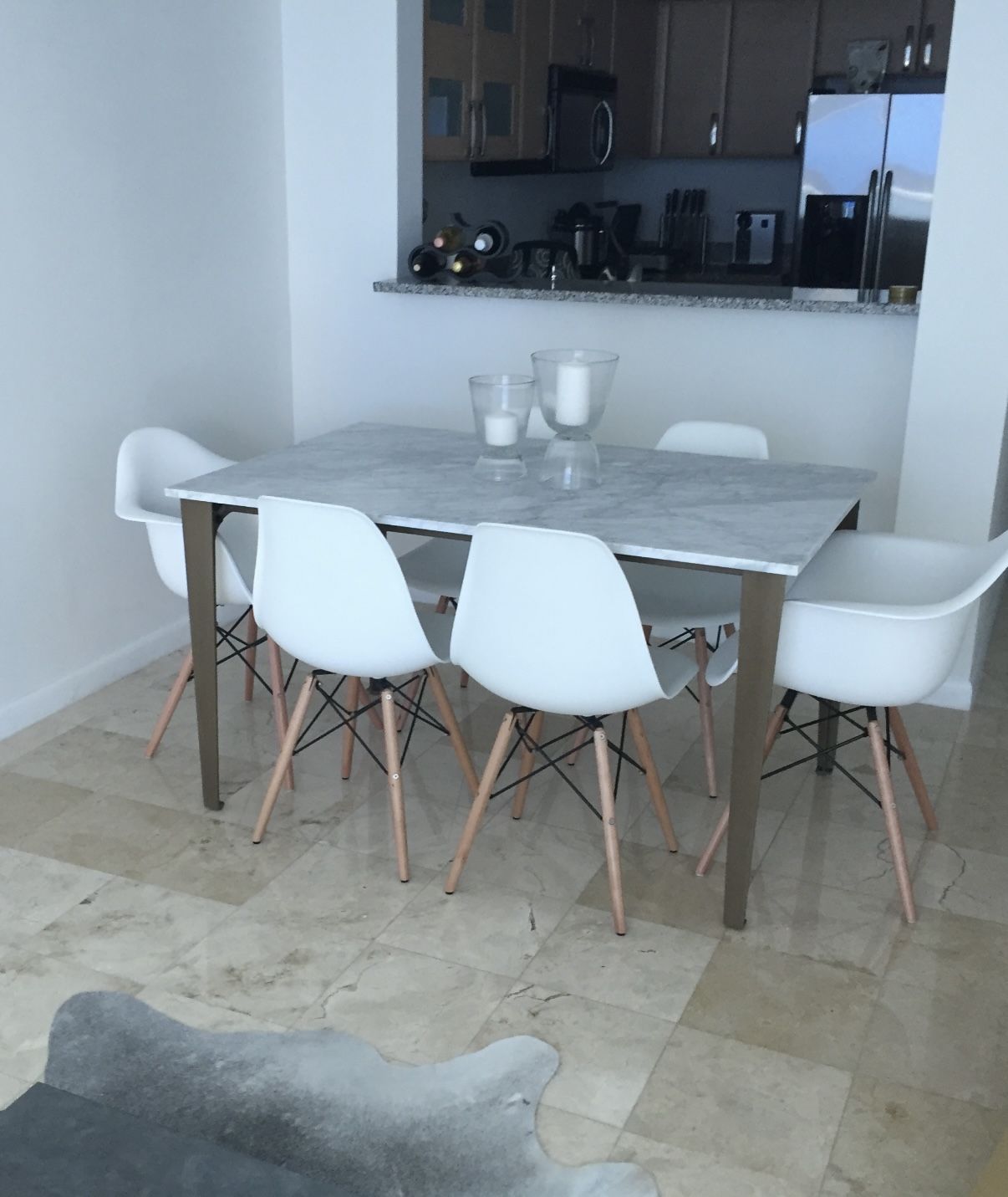 marble and bronce gold metal dining table ( heavy ) it fix from 4 to 6 chairs from CB2 cost $1800 selling on $700 64”Lx35”W x 30”H