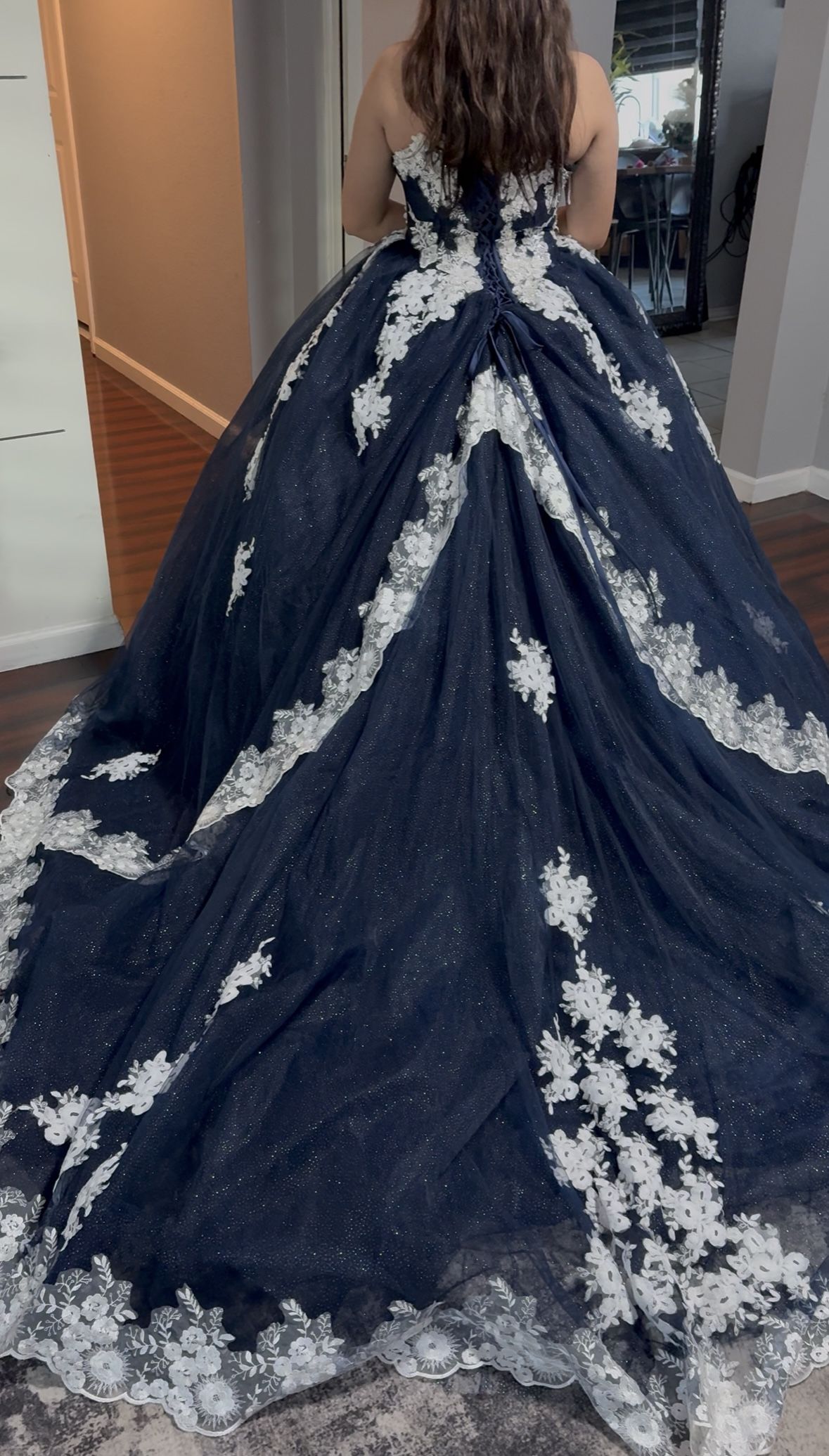 Quinceañera Dress Never used size 10-12 Asking $220 or best offer. Very nice dress and good quality you can come try it on, it has off shoulder sleeves but if you remove them it ll look like some of the pictures. Vestido de quinceanera nuevo nunca se uso talla 10-12 pido $200 o mejor oferta. Se ve Muy bonito y buena calidad venga a verlo sin compromiso. Tiene mangas, caídas de hombros, pero si se las remueve le quedaría como una de las fotos.