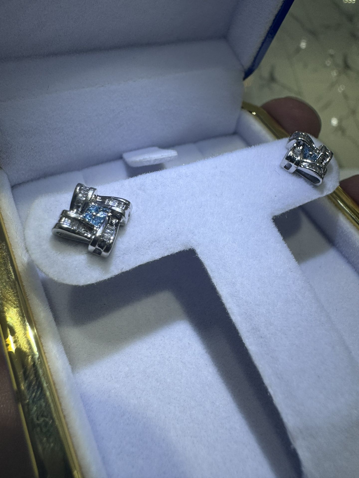 .25ct natural diamond and synthetic blue gem on 10k white gold brand new