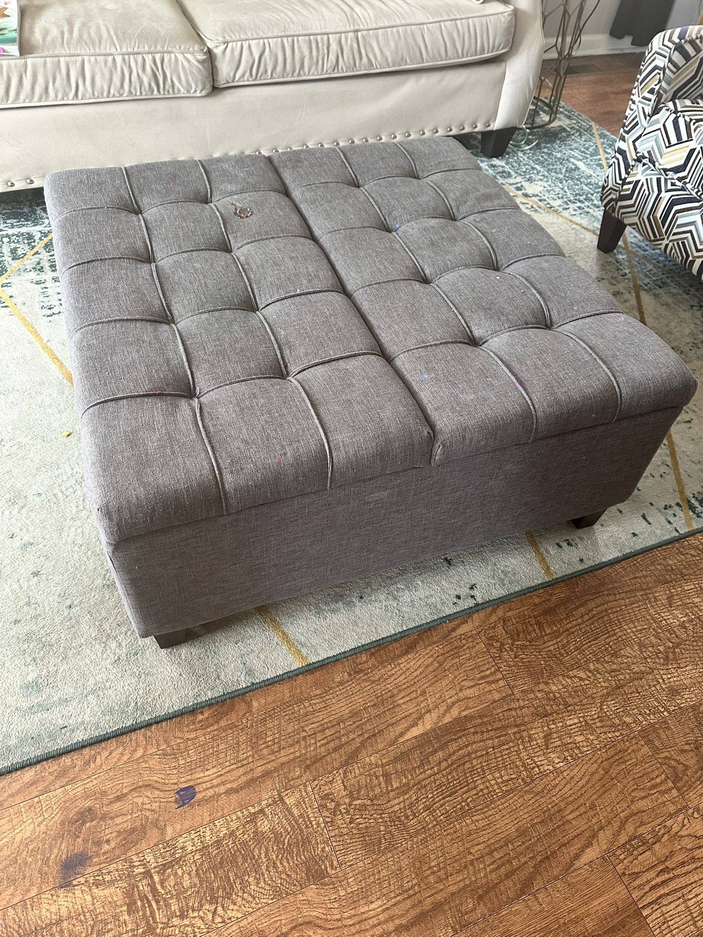 36-inch ottoman with storage in good condition. Minor imperfections that can be cleaned with upholstery cleaner and steam. Asking price is $150 but wiling to negotiate. Purchased on Amazon for $300+.