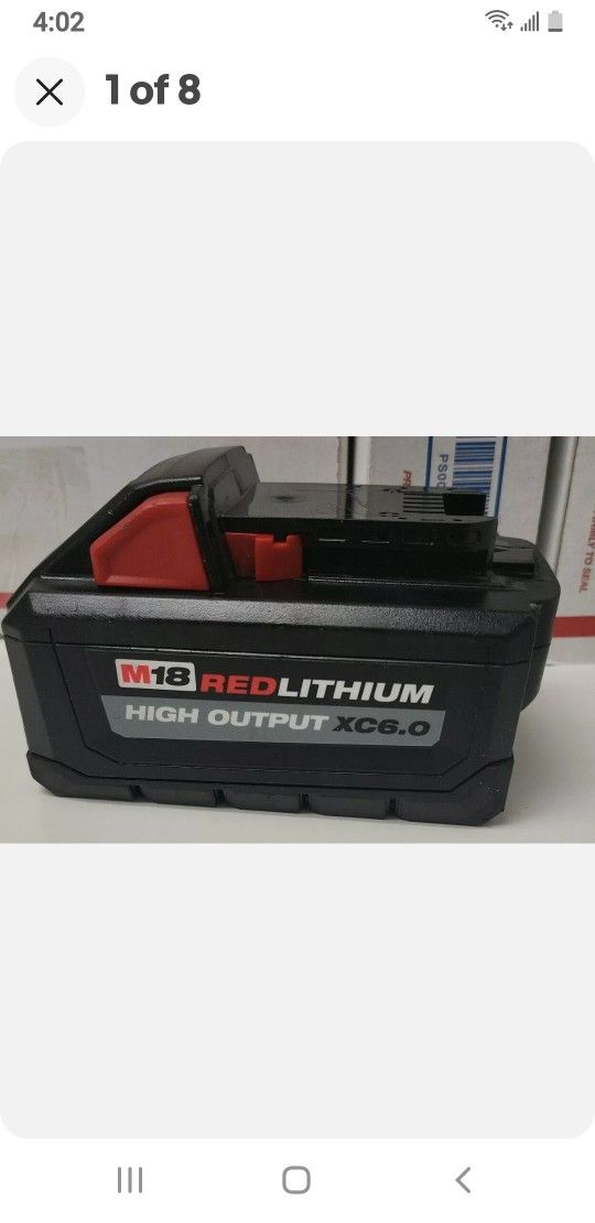 upto 2 available @$75 each Firm. HELLO, UP FOR SALE IS A PRE-OWNED MILWAUKEE M18 RED LITHIUM HIGH OUTPUT XC6.0 BATTERY MODEL# 48-11-1865 , WITH FUEL GAUGE . 2 left. CONDITION -- PRE-OWNED AND SHOWS NORMAL WEAR AND FEW SMALL SCRATCHES TESTED AND WORKS PERFECT !!