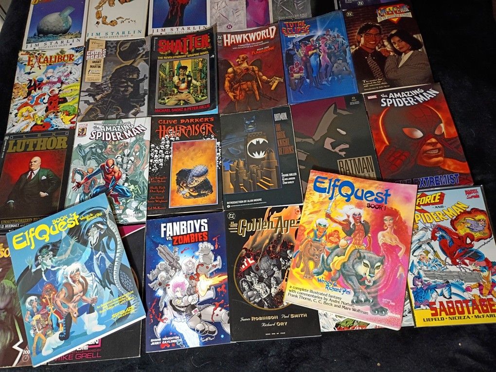 Local pickup only north east Houston Texas. 26 trade paper back books. Used condition. Asking 55$ cash only for the lot. Lots of good reading material. Elf quest , hellraiser , Spider-Man etc. also have other comic book lots listed check them out.