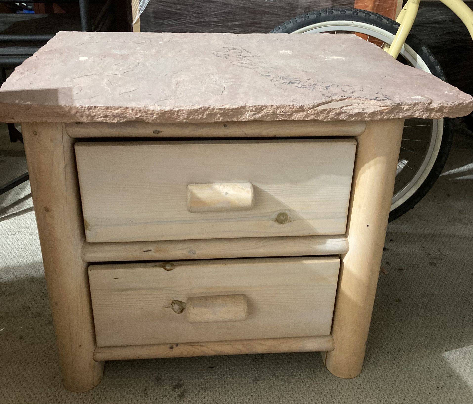 Solid nightstands with Red Slate tops 24” height. 29” across with removable top First come