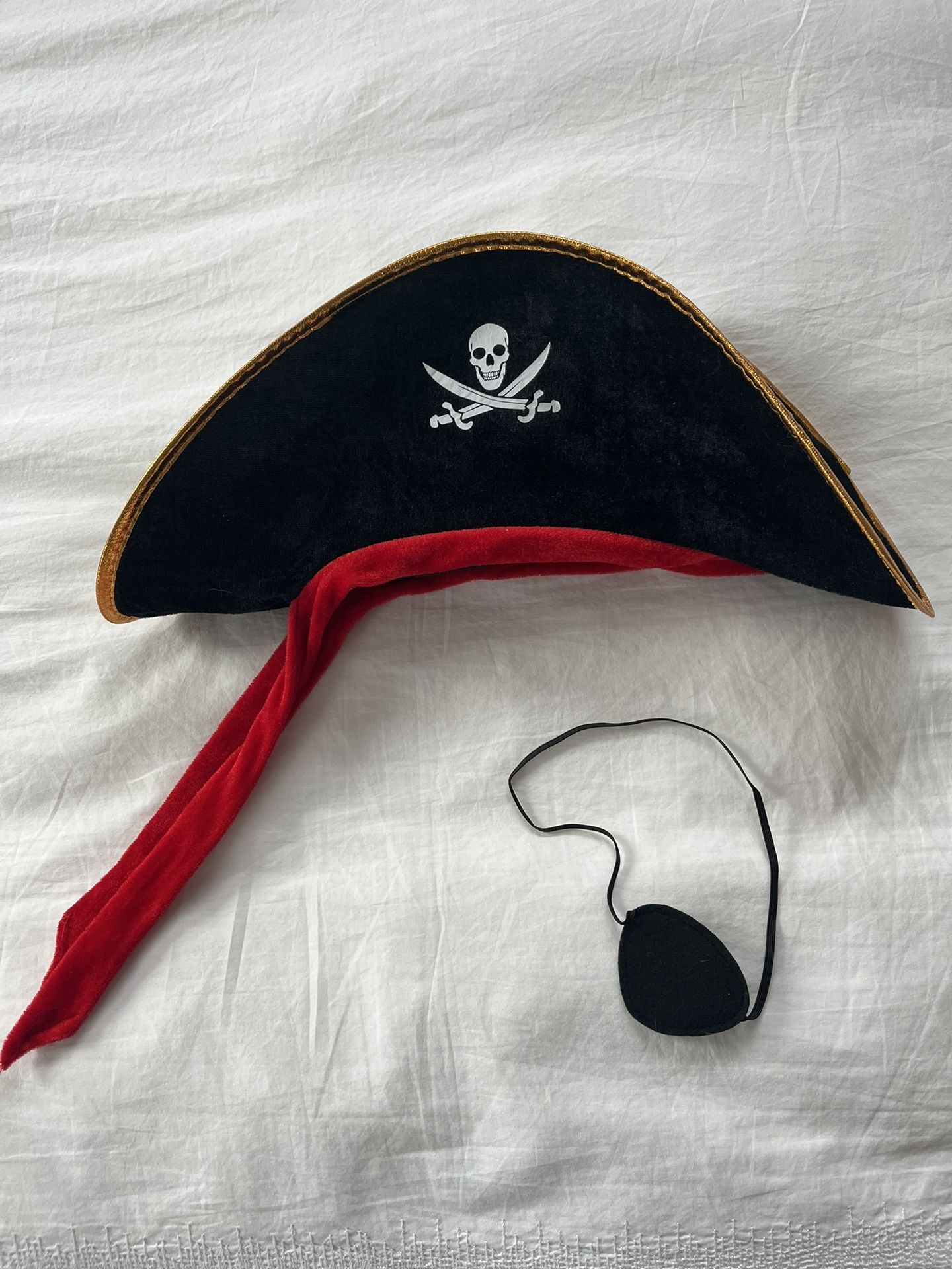 Pirate costume with eye patch, hat, shirt and pants. Size 5-9 Excellent/perfect condition-no rips or stains $8 *IF POSTED, THEN AVAILABLE