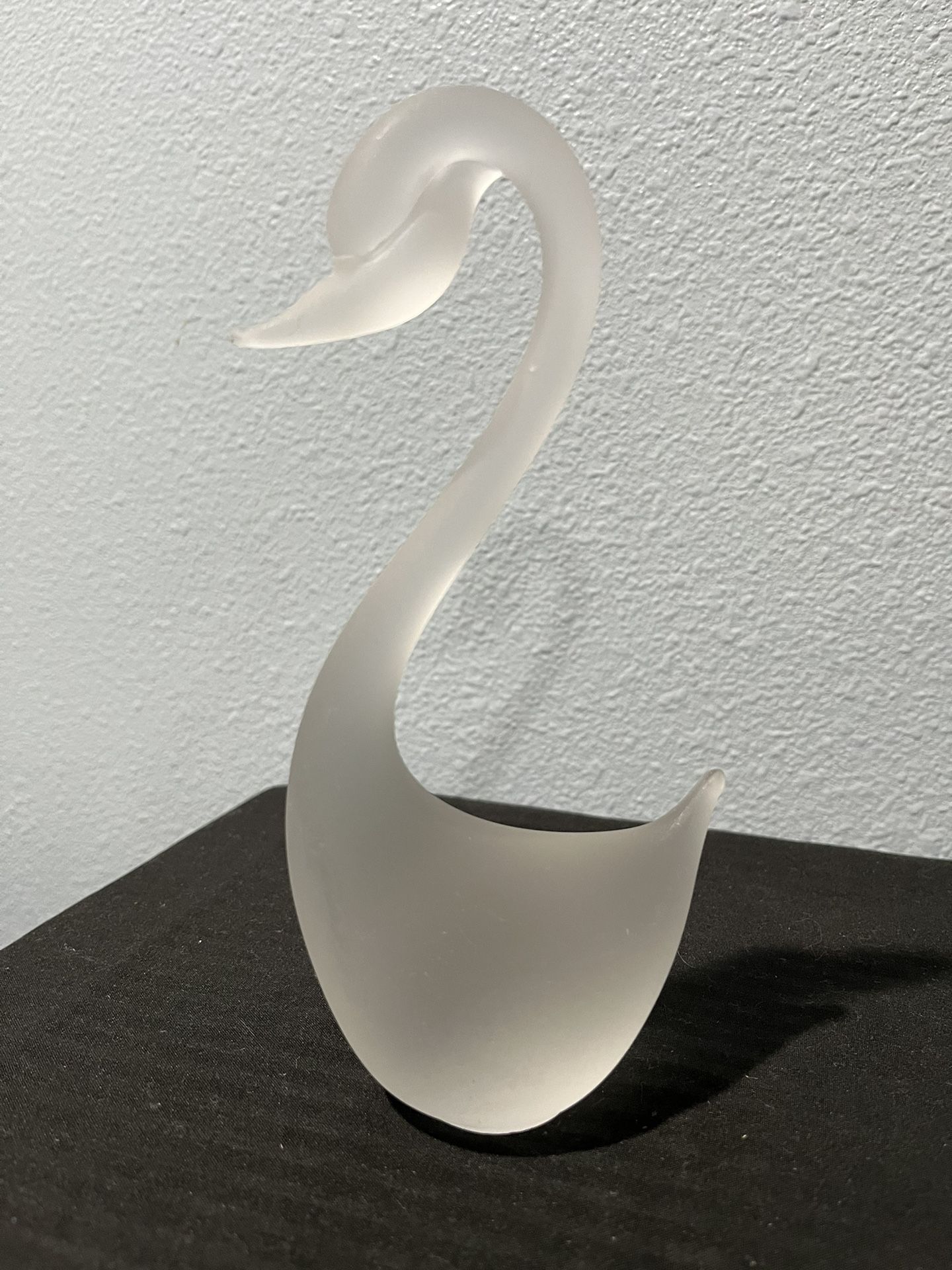 Vintage Frosted Glass Swan, Glass Sculpture,