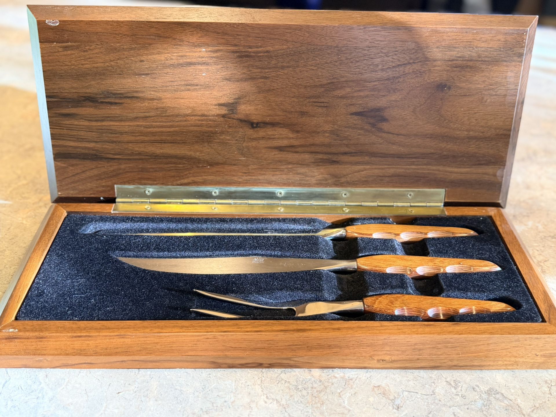 Vintage Carriage House 3-Piece Carving Set w/ Wood Case – Stainless Steel